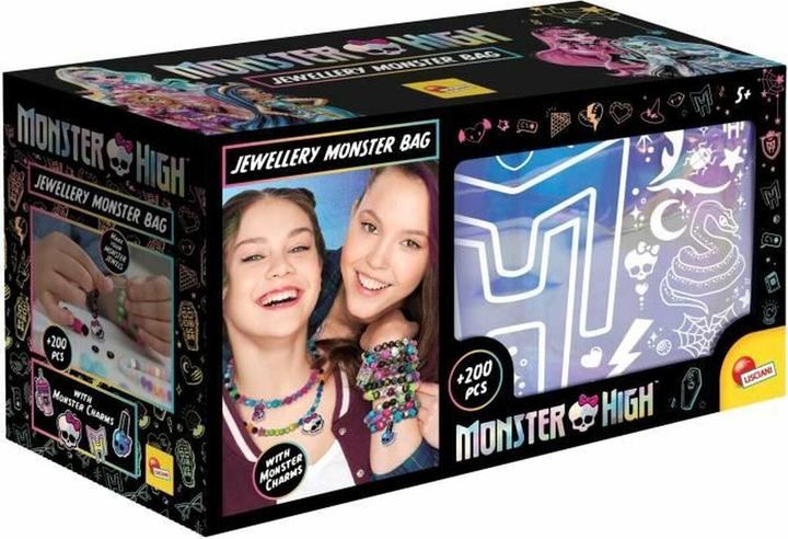 The Monster High Jewellery Bag is a craft kit for kids (5+) featuring a sparkling bag and materials to make personalized Monster High necklaces and bracelets with colorful beads, letters, and themed charms, encouraging creativity and self-expression in a fun, artistic way