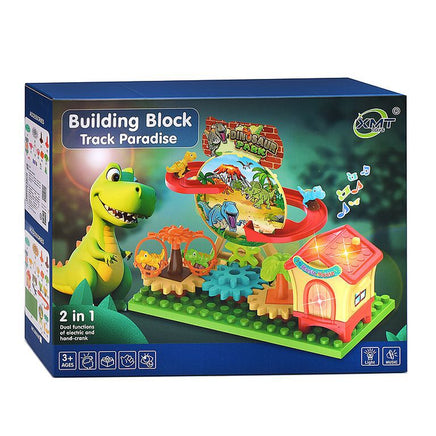 Transport your child to a prehistoric world of adventure with the Building Block Track Paradise dinosaur park. This multi-functional toy combines the classic fun of building blocks with a dynamic, interactive track system, designed to engage young explorers ages 3 and up.