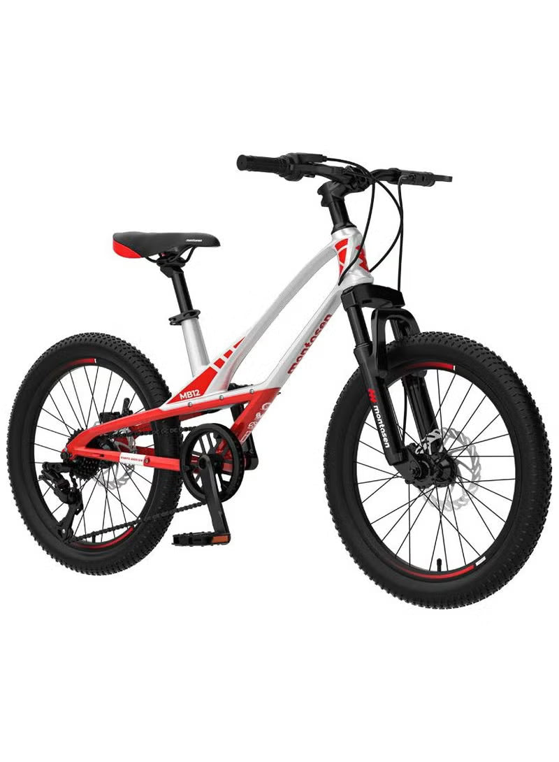 A 20-inch Montasen bicycle is a kids' mountain bike, often featuring lightweight magnesium or durable steel frames, suspension, and sometimes 7-speed Shimano gears, designed for children typically aged 5-9 (4'0" - 4'5" tall), offering a blend of style and functionality for park or trail adventures. Models range from simple single-speed for beginners to more advanced versions with disk brakes and suspension for young explorers, reflecting adult mountain bike styles.