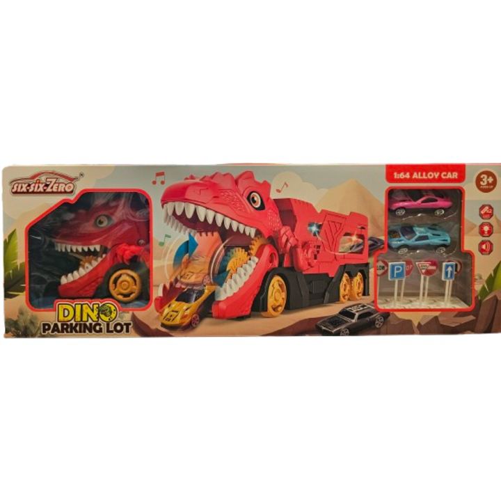 An exciting all-in-one dinosaur car playset that combines action, sound, and storage—perfect for young racers and dino fans alike. 🦖🚗