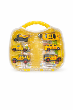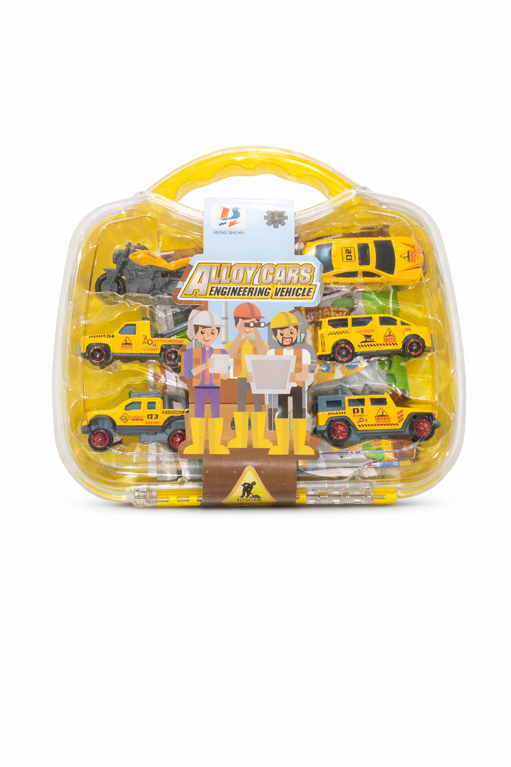 This compact engineering set features multiple construction-themed vehicles neatly packed in a portable carry case, making it perfect for home play or on-the-go fun. It encourages imaginative role-play, improves hand-eye coordination, and helps children develop problem-solving skills while having fun.