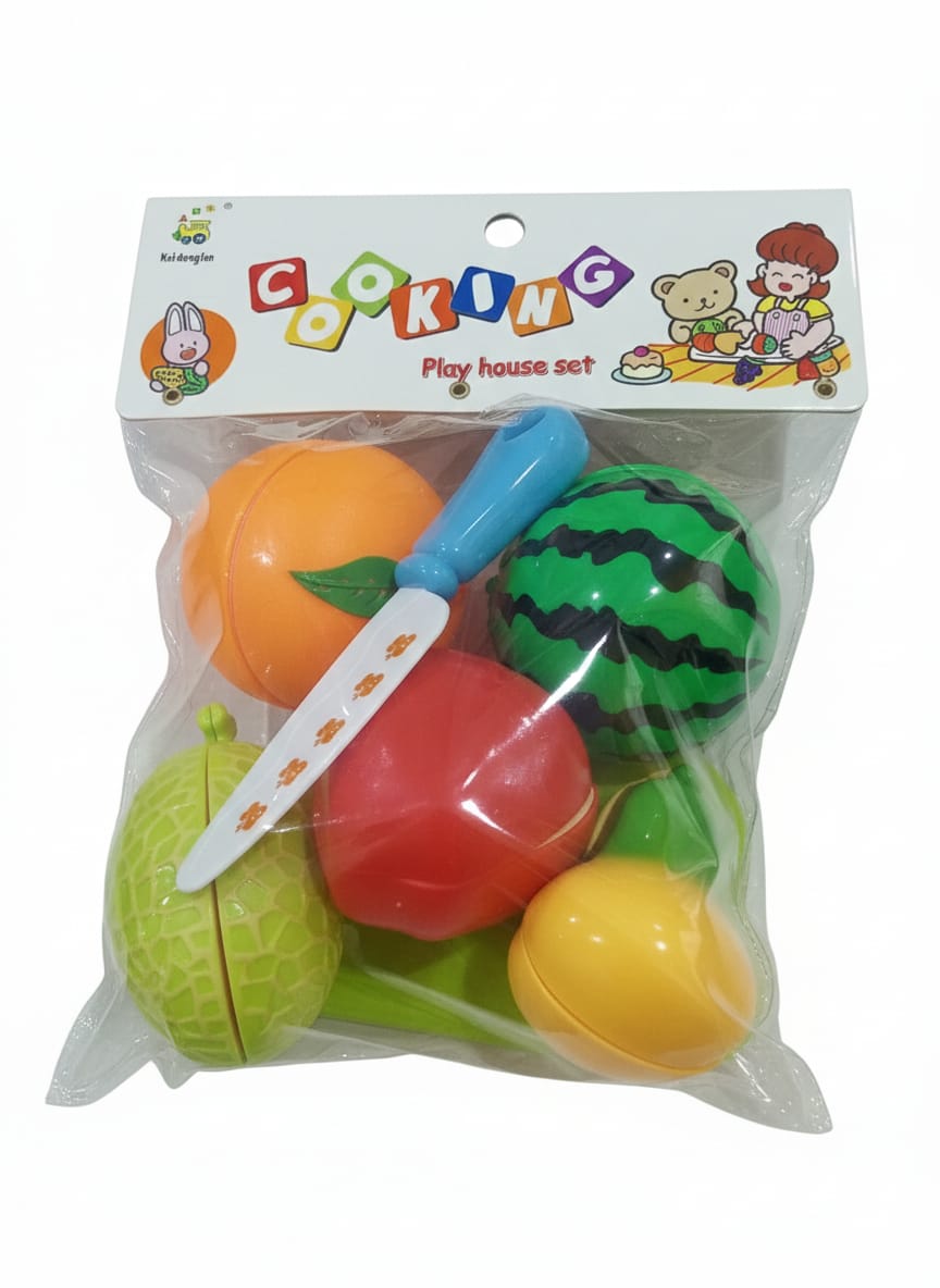Bring the joy of the kitchen to your playroom with our Cooking Play House Set. Designed for tiny hands with big imaginations, this colorful collection allows kids to "cut," prep, and serve their favorite fruits just like a real chef. Each piece features a built-in fastener, providing a satisfying "crunch" sound and tactile resistance when sliced.