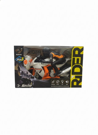 The R/C Motorcycle delivers high-speed fun and thrilling stunts with 360° rotation and vibrant lighting effects. Controlled with a 2.4GHz remote, it allows kids to perform precision tricks and navigate smooth or rough surfaces with ease. Perfect for children aged 3 and above, this motorcycle combines excitement, durability, and hands-on action for endless indoor or outdoor play.