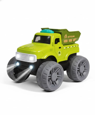 Interactive Recycling Truck: Bright green sanitation truck designed with realistic details.